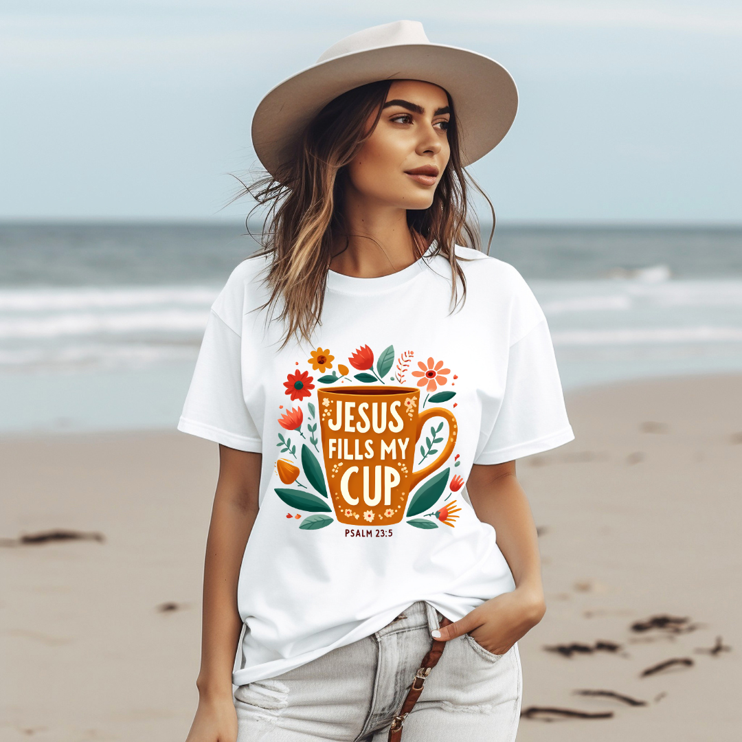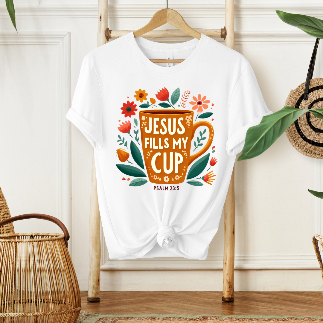 JESUS FILLS MY CUP, PSALM 23:5- Christian Unisex T-shirt